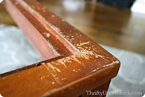 I thought about keeping the leather top – for a minute. Then I got it cleaned off and saw it was beyond repair. The leather was cracked, which didn’t really bother me. But it also had paint and what looked like burn marks on it as well. And when I got it cleaned off I realized it was a very unattractive puke-brown color. Not so sad I couldn’t salvage it after that. :)